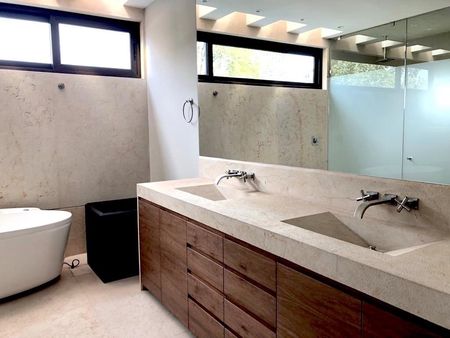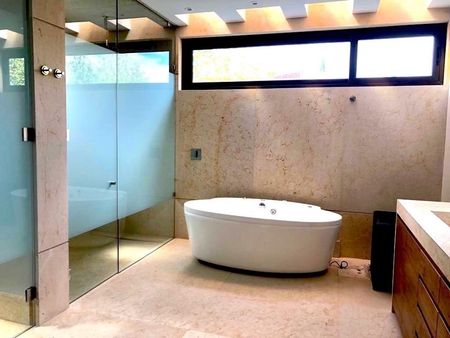 4 estacionamientos, cámaras de seguridad, cisterna de 15,000 lt3, riego por aspersión, sonido integrado en toda la casa Páneles solares, calefacción, aire acondicionado.
