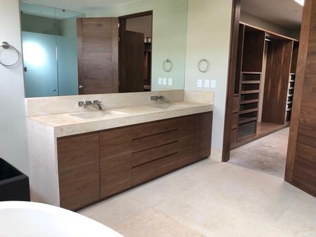 Tiene 4 recámaras con baño y walk in closet, la principal con un gran vestidor, otro family en la parte de arriba .